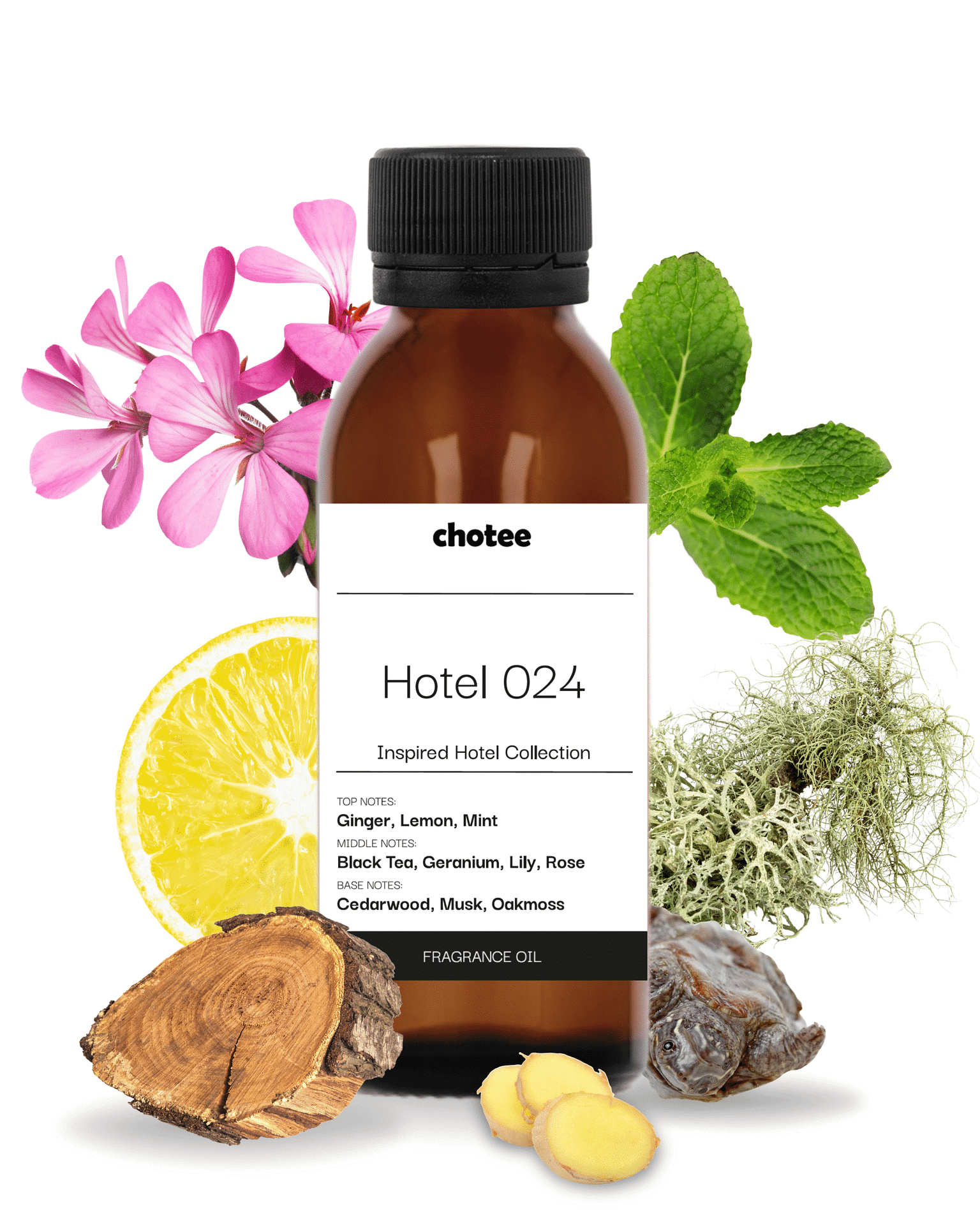 Hotel 024 to elegancki, luksusowy zapach, inspirowany atmosferą panującą w ekskluzywnych hotelach, takich jak W Hotel. Otwiera się świeżymi i pikantnymi nutami cytryny, imbiru i mięty, które wprowadzają lekkość i energetyzującą rześkość. Kwiatowe serce z czarnej herbaty, lilii, pelargonii i róży dodaje kompozycji harmonii, elegancji i subtelnej zmysłowości. Bazowe nuty drzewa cedrowego, mchu dębowego i piżma otulają przestrzeń ciepłem, głębią i luksusowym charakterem, tworząc relaksującą, prestiżową atmosferę.