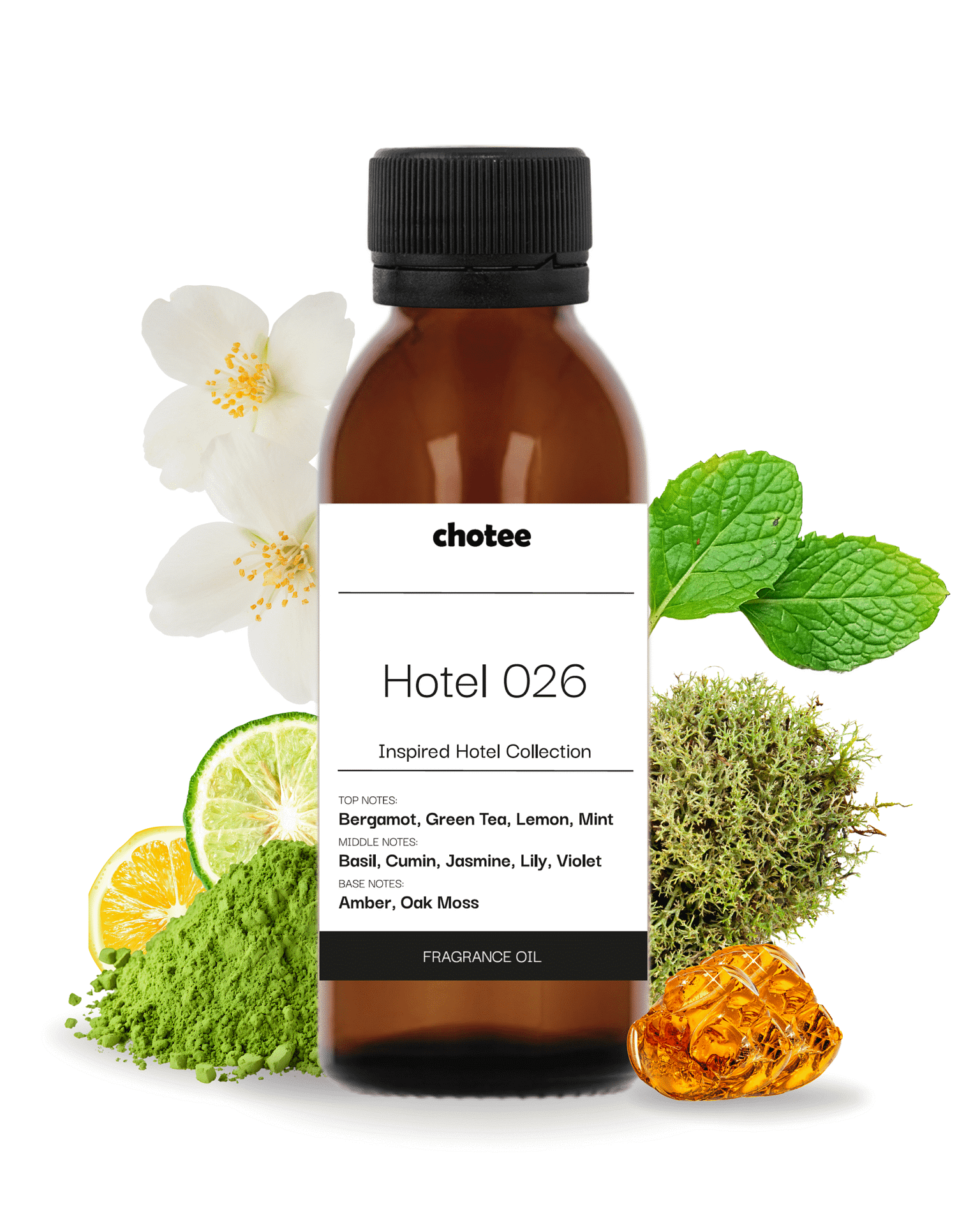 Hotel 026 to elegancki, luksusowy zapach, inspirowany atmosferą panującą w ekskluzywnych hotelach, takich jak Holiday Inn. Otwiera się świeżymi, rześkimi nutami bergamotki, cytryny, mięty i zielonej herbaty, które wprowadzają lekkość i energetyzującą świeżość. Kwiatowe i zielone serce z bazylii, fiołka, jaśminu, kminku i lilii dodaje aromatowi harmonii, elegancji i subtelnej zmysłowości. Bazowe nuty bursztynu i mchu dębowego otulają przestrzeń ciepłem, głębią i luksusowym charakterem, tworząc relaksującą, prestiżową atmosferę.
