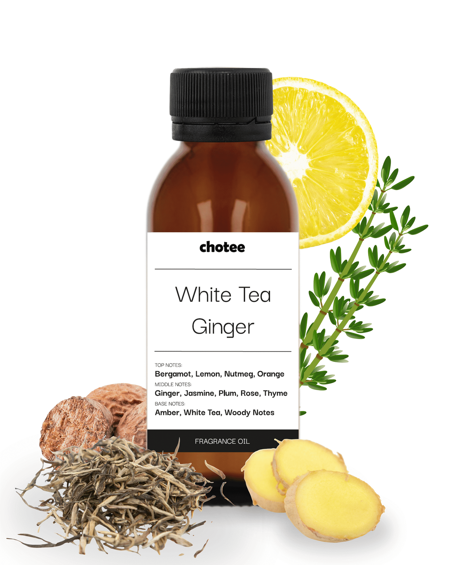 White Tea to świeży i jednocześnie ciepły zapach, który wprowadza w stan odprężenia i harmonii. Otwiera się rześkimi nutami bergamotki, cytryny, gałki muszkatołowej i pomarańczy, nadając aromatowi energii i lekkości. Serce z imbiru, jaśminu, róży, śliwki i tymianku wprowadza kwiatowo-owocową głębię z subtelnym pikantnym akcentem. Bazowa nuta białej herbaty, bursztynu i drewna otula przestrzeń miękkością, tworząc przyjemny, relaksujący i harmonijny klimat.
